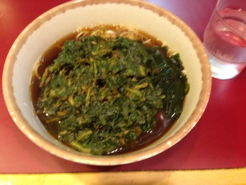 トッピングされており、見た目は緑一色、といった感じのそばです。
