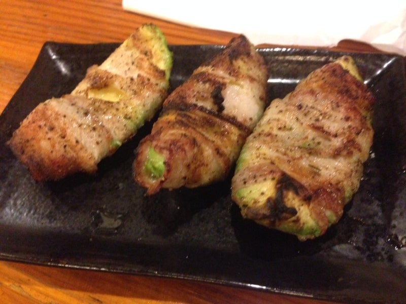 市川のお店限定?のアボガド肉巻き(※2ヶ250円、写真は3ヶ)がとても