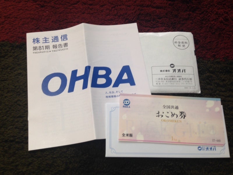 新設優待銘柄オオバ(9785)からお米券がきました!