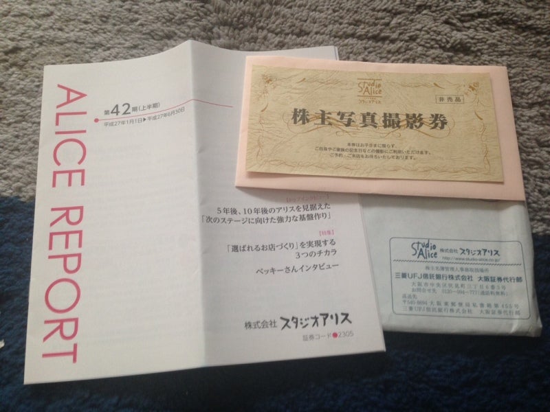 スタジオアリス(2305)から株主優待の撮影券が到着したので業績レビュー。