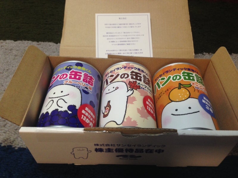 する6月末の株主に対して、「パンの缶詰」を進呈しておりますので、