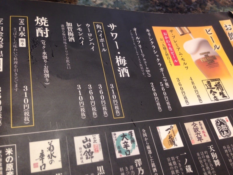 のお店でよくある「ビール2杯目以降割引(プレモル360円)」に加え、角ハイ