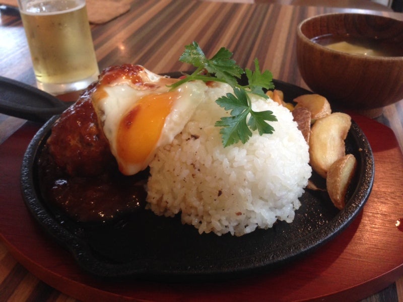 人気の鉄板ロコモコをいただきました。鉄板が本当にアツアツのため、
