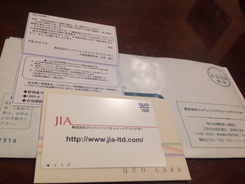 株主に対して、1,000円分のクオカードを進呈していますので、配当
