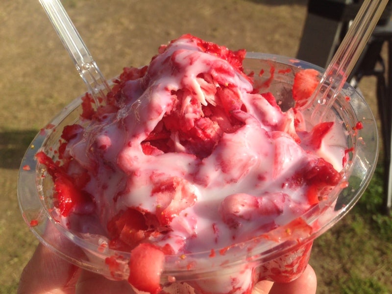 右側の写真は”イチゴ削り”という冷凍イチゴのデザートです。
