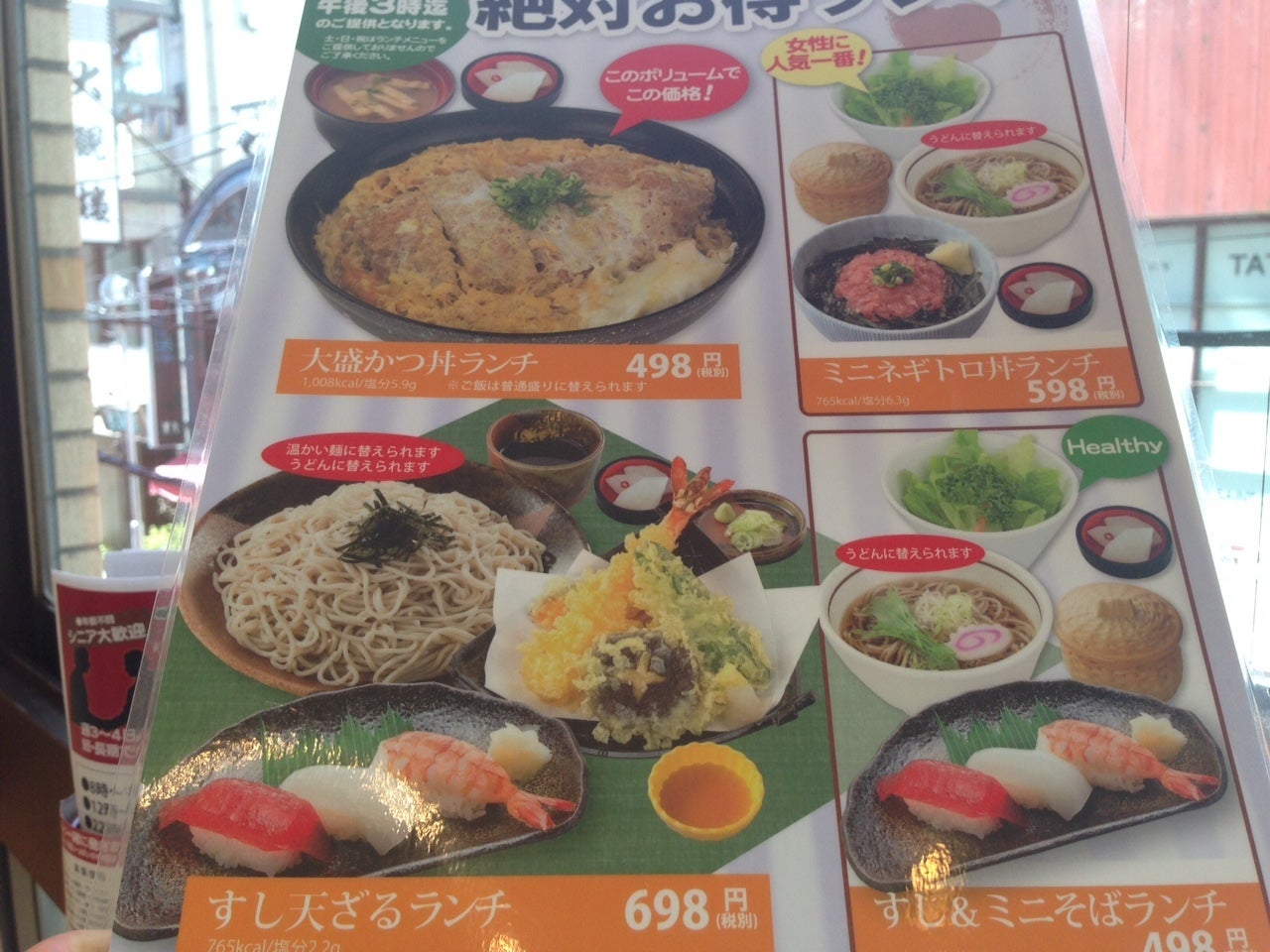 全体的に安いです。平日ランチ限定ですが、カツ丼大盛が498円