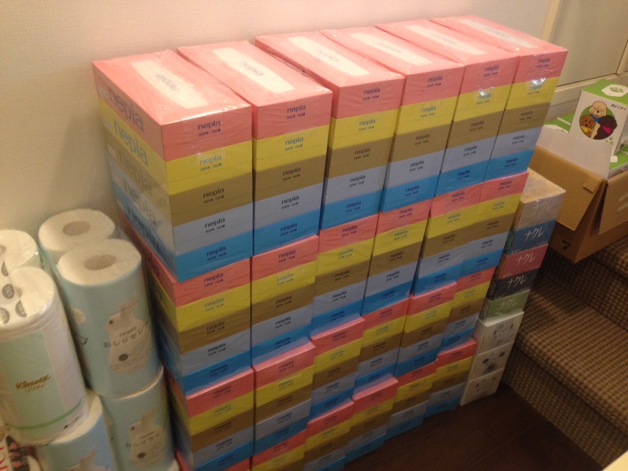 こちらもまだ1箱も使っていないので、我が家のティッシュ在庫はのべ130箱以上