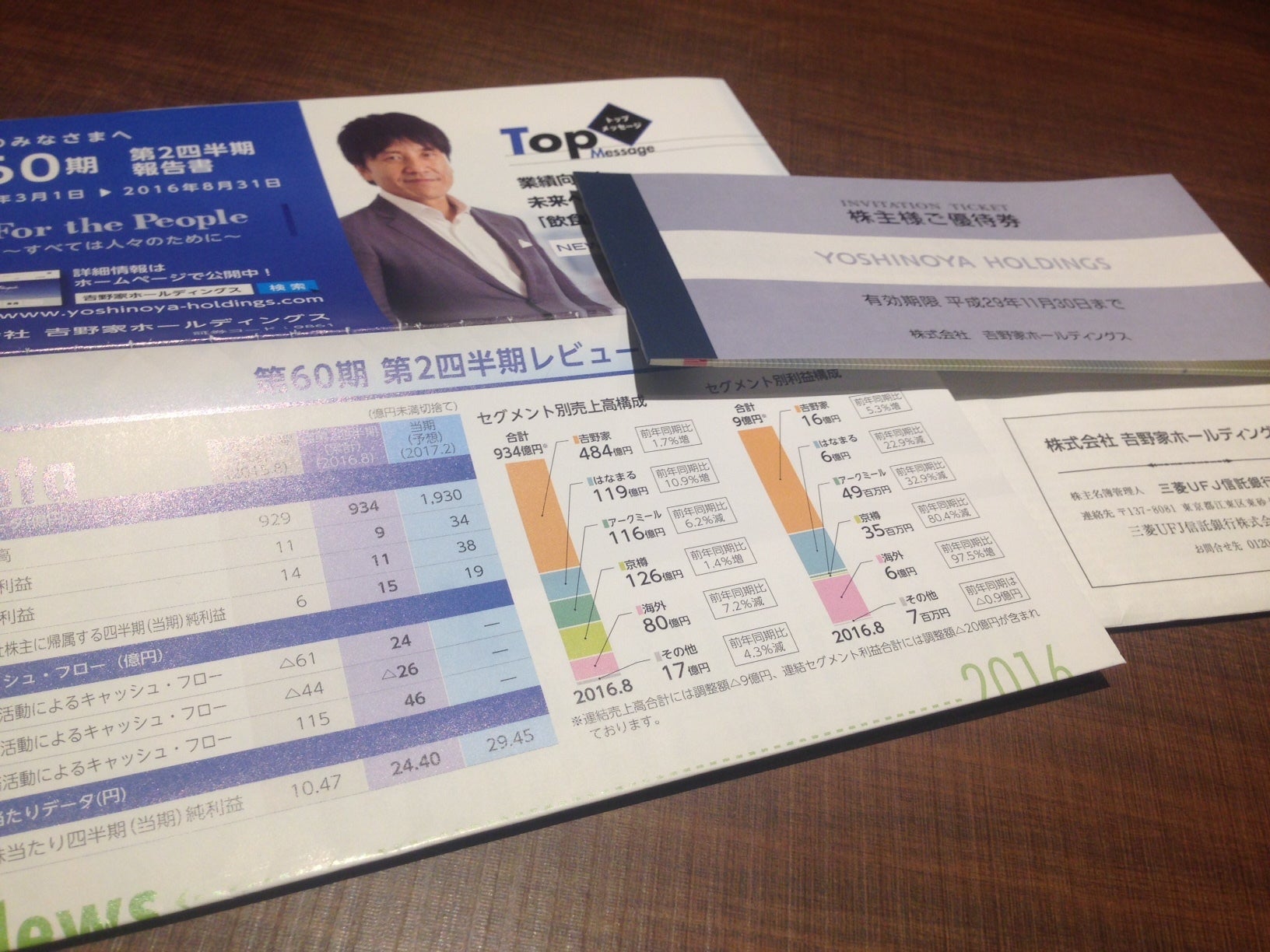 吉野家ホールディングスは株主優待として、2月末8月末に100株以上を
