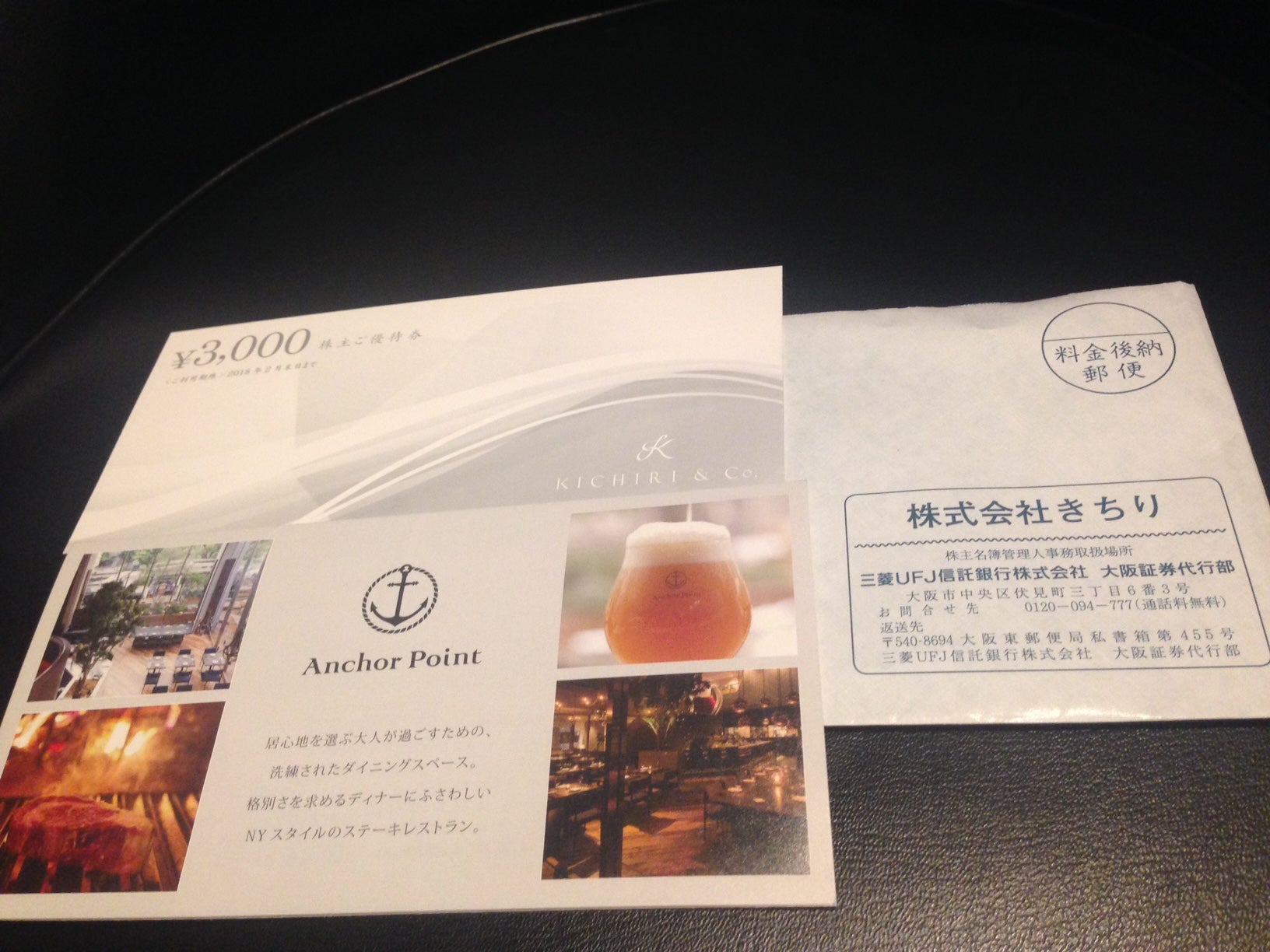 きちりは株主優待制度を実施しており、100株以上の株主に対して3,000円