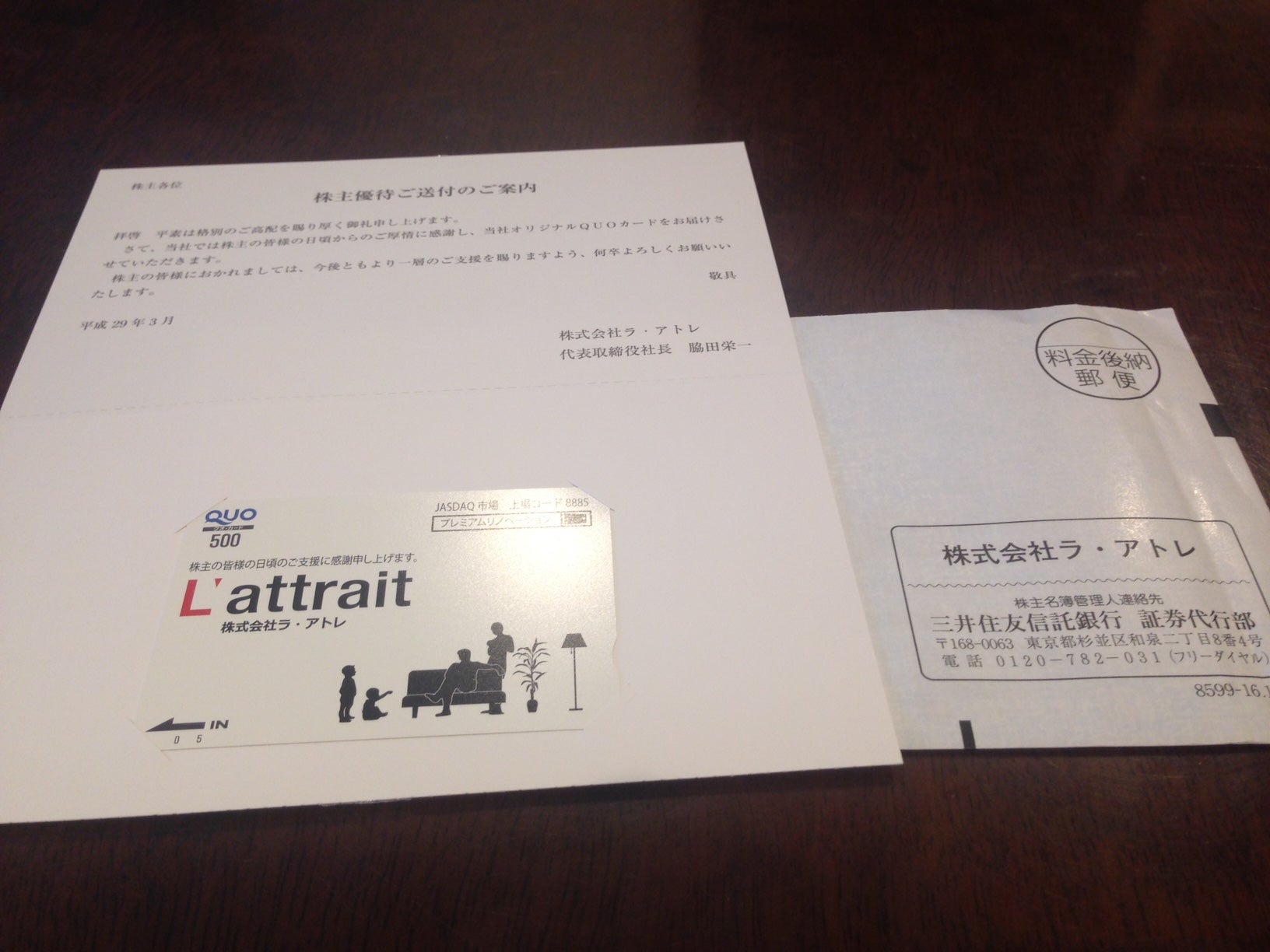 ラ・アトレは株主優待制度を実施しており、6/12末の単元株主に対して、