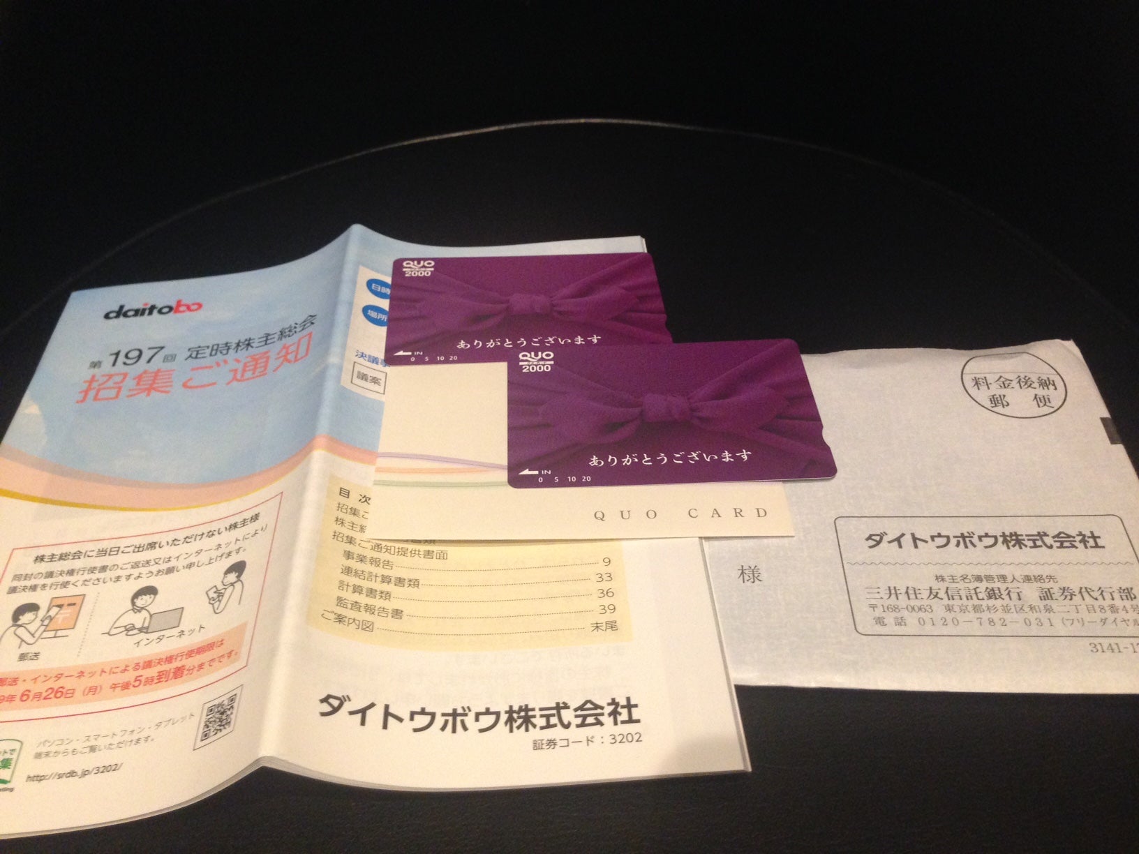 の1000株以上保有株主に対し、2,000円分のクオカードを進呈しておりま