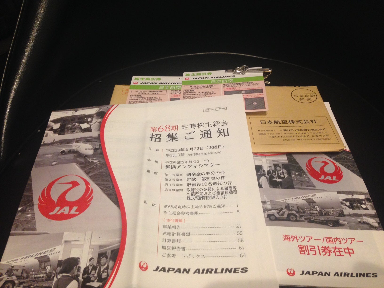 保有する株主に対して、国内便が半額になる株主割引券を進呈しており