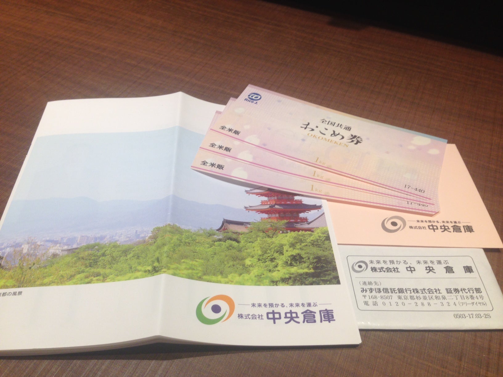 業績安定の中央倉庫(9319)から株主優待のお米券がきました!