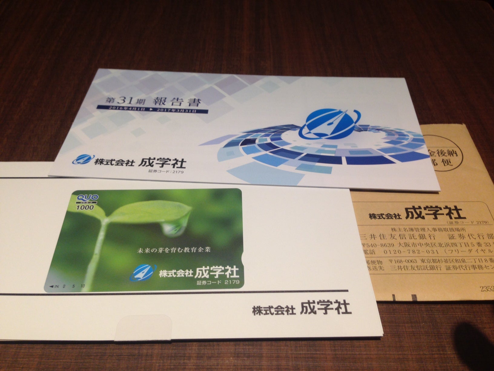 小額投資が可能なクオカード銘柄、成学社(2179)の投資判断。