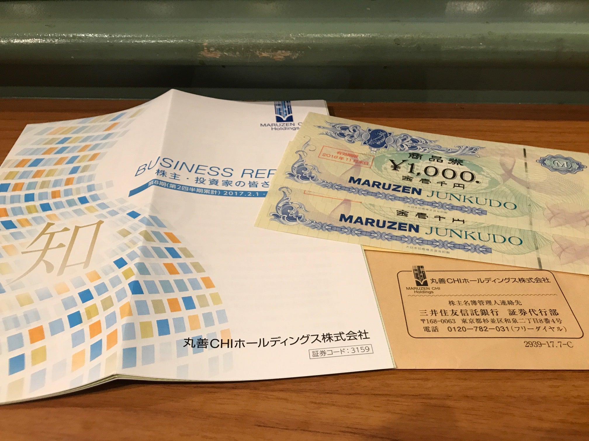 丸善CHI(3159)から優待の自社商品券がきたのでレビュー。