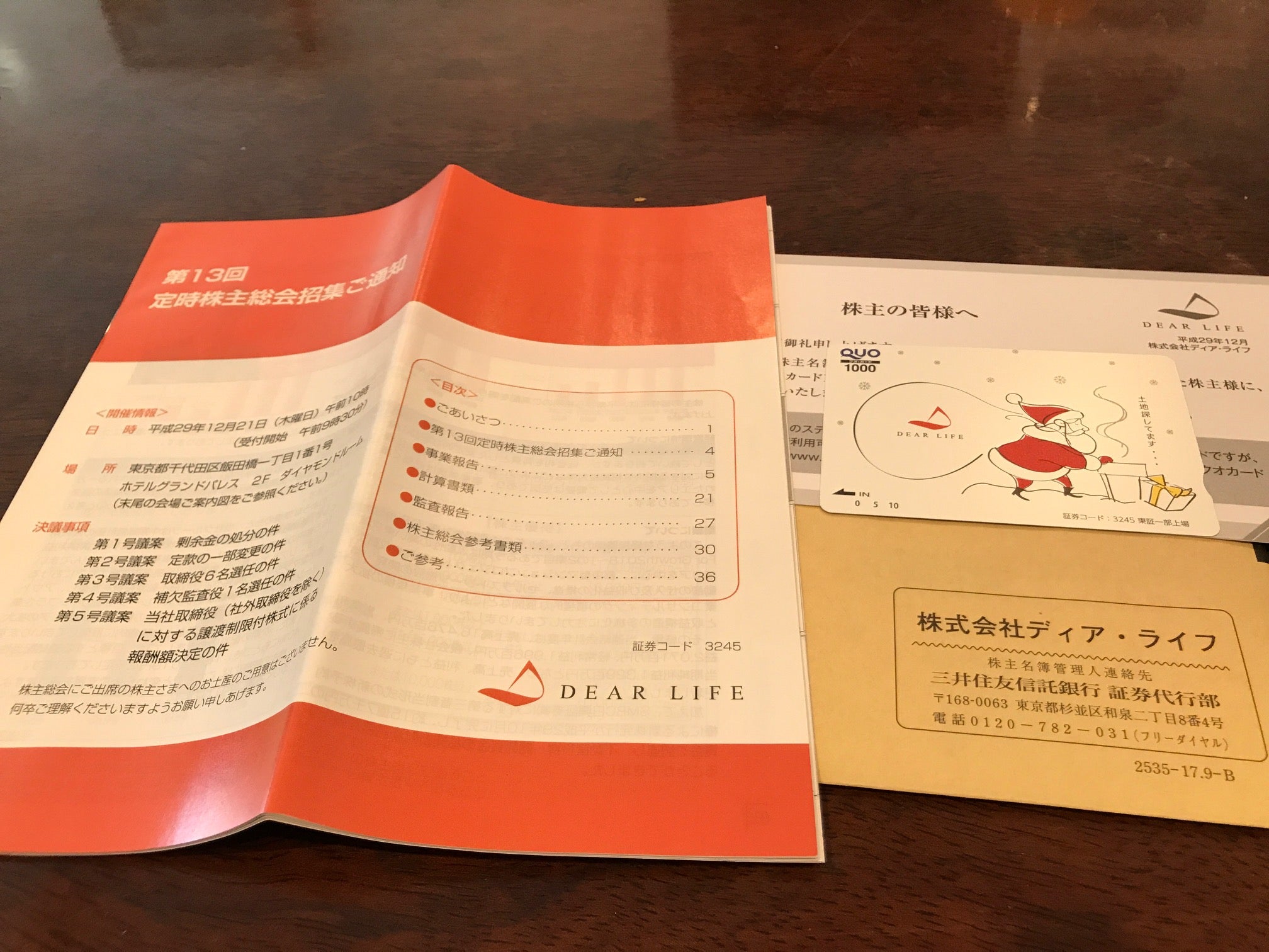 一部昇格目標を公言、ディア・ライフ(3245)からクオカードが届いたので短評。