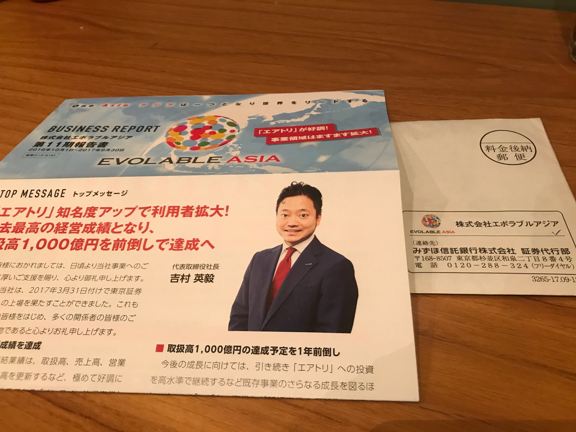 エボラブルアジアは株主優待制度を導入しておりまして、9月末・3月末時点の