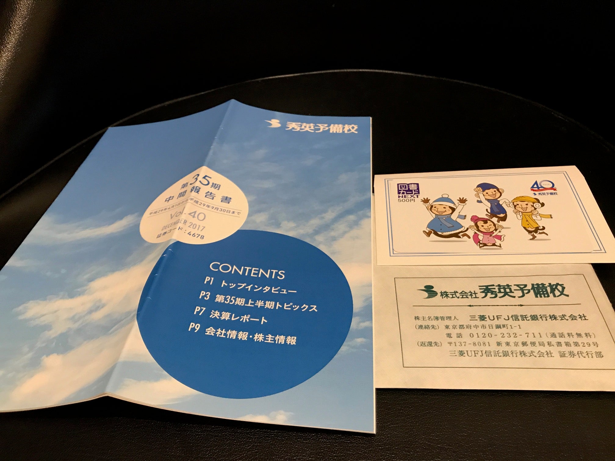 秀英予備校は株主優待制度を導入しており、3月末・9月末に100株以上を保有