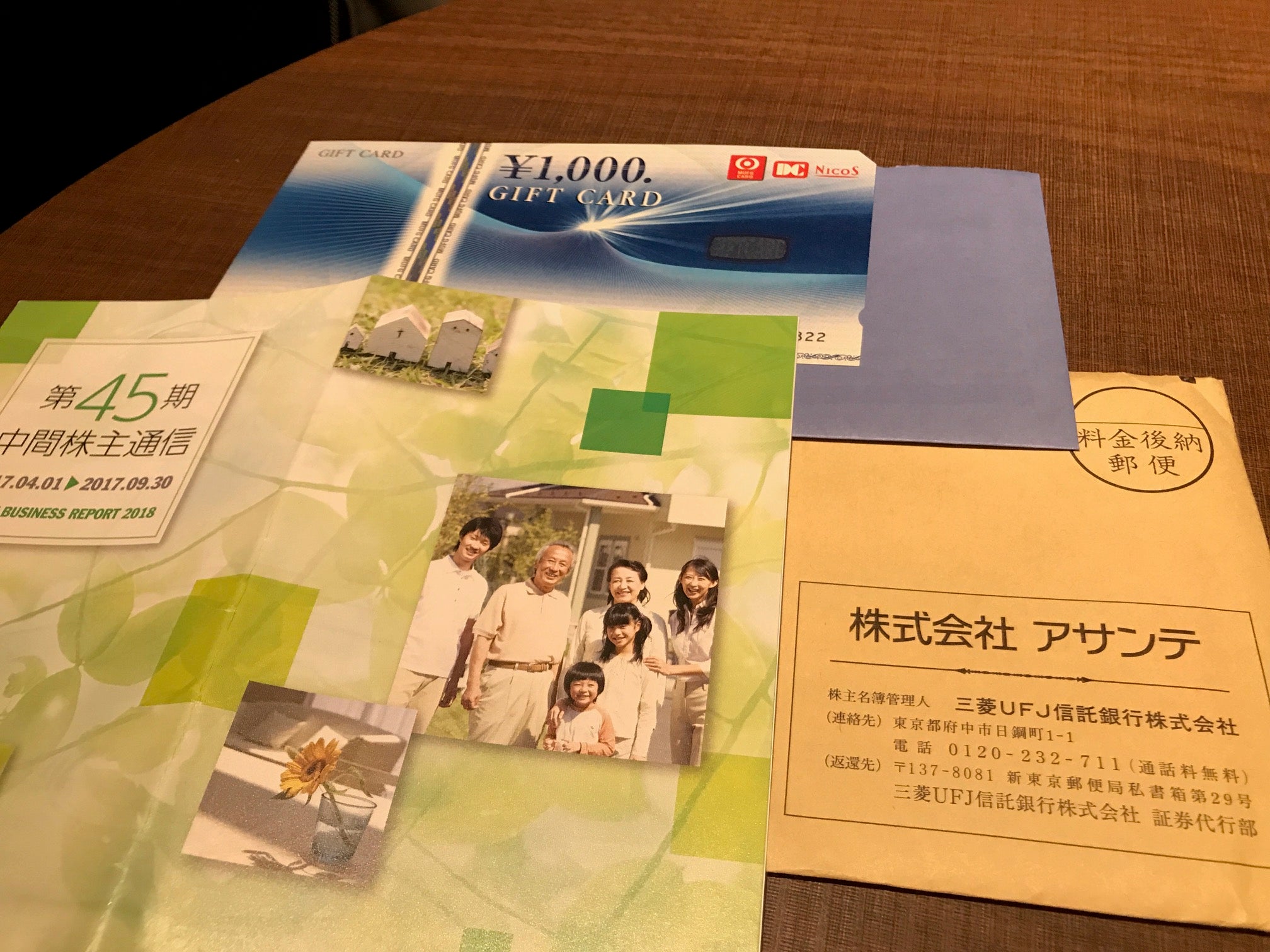 アサンテは株主優待制度を導入しており、3月末・9月末に100株以上を保有