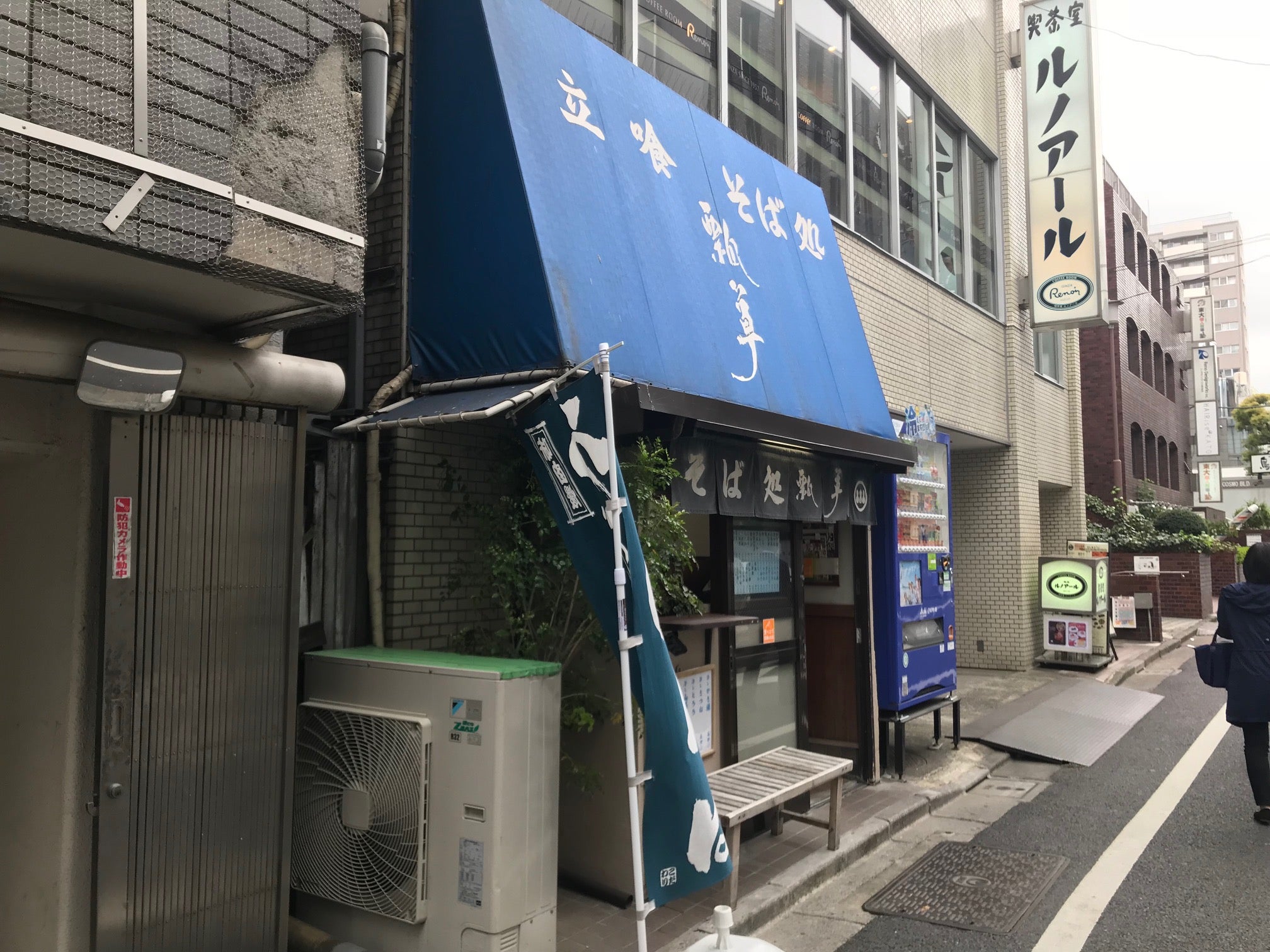 日テレ通りから一本入ったところにあり、立ち食い蕎麦屋としての視認性は微妙です。