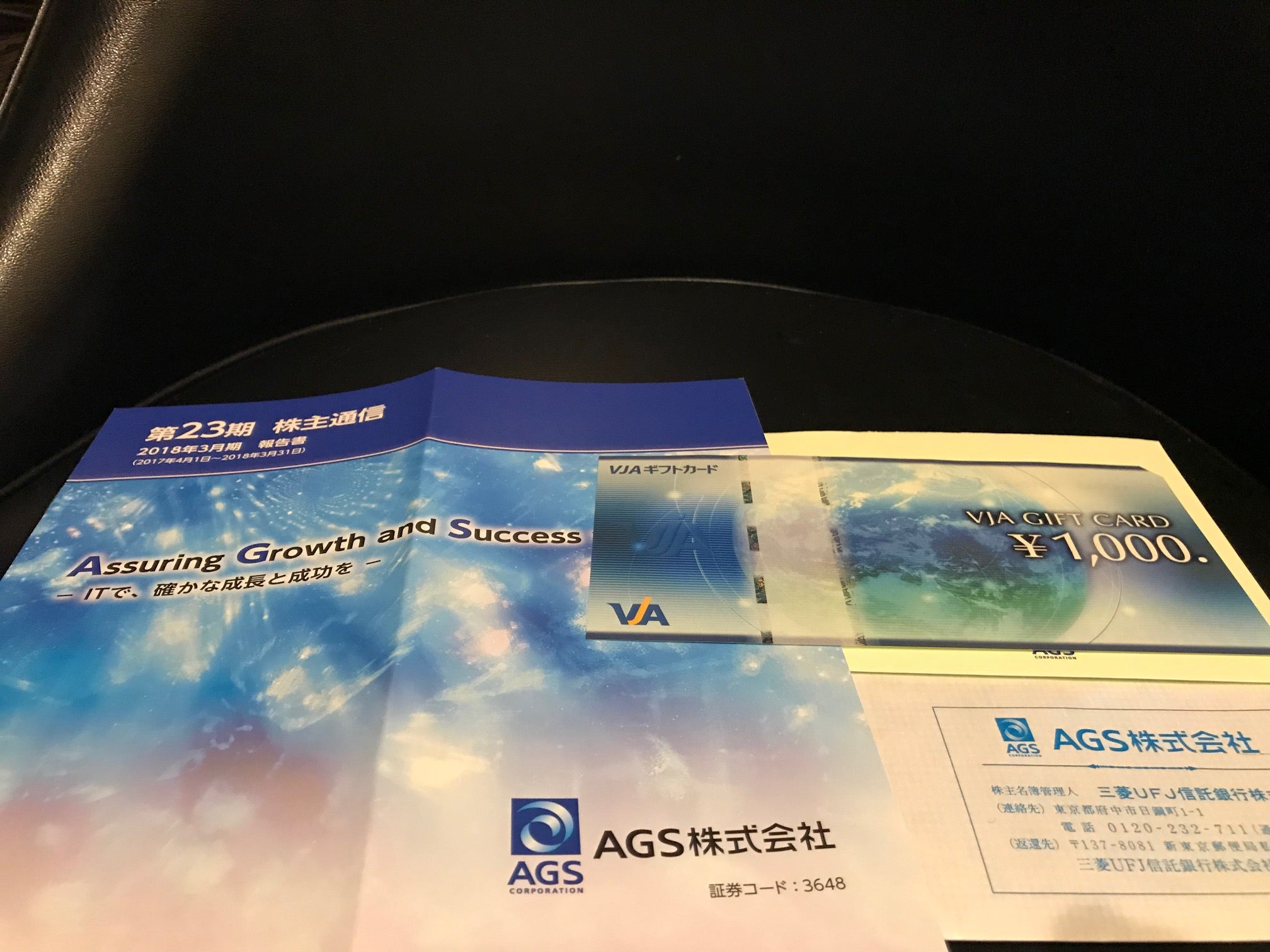 AGSは株主優待制度を導入しており、3月末の単元株主には1,000円のVJAギフトカード、