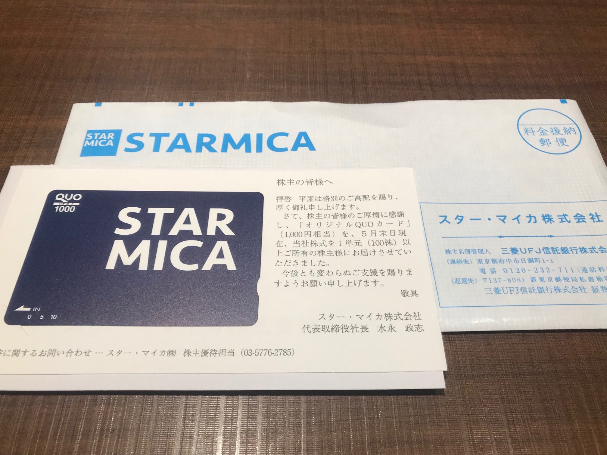 スター・マイカは株主優待制度を実施しており、100株以上の5月末株主に対して1,000円
