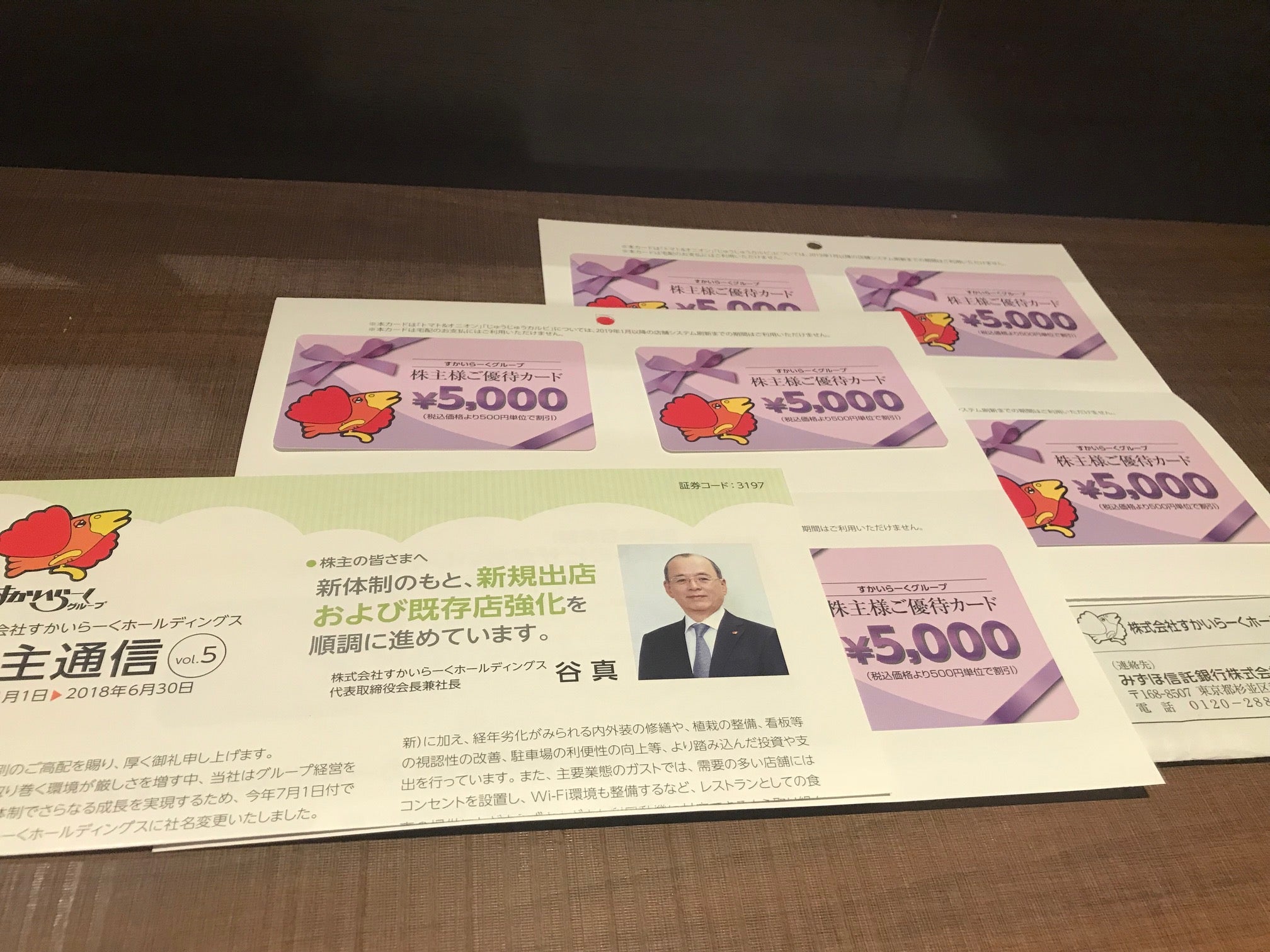すかいらーくは株主優待として6月末・12月末の単元株主に対し、3,000円分のお食事券を