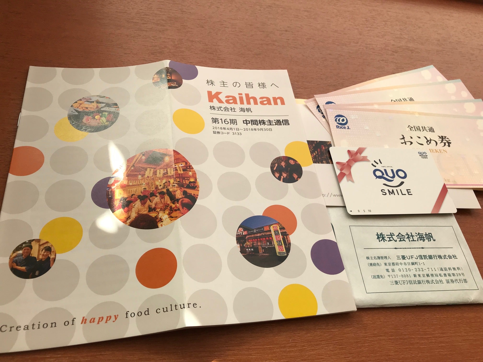 海帆は株主優待制度を導入しており、3月末・9月末時点で単元株を保有する株主に対して、