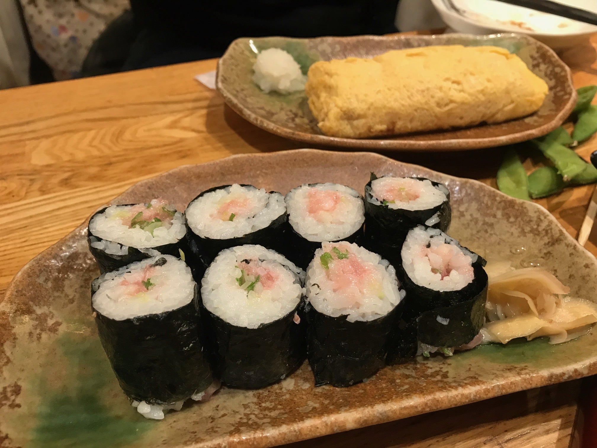 ゴマちゃん一押しの出汁巻き玉子とネギトロ巻きです。ネギトロ巻きは私が自己紹介で