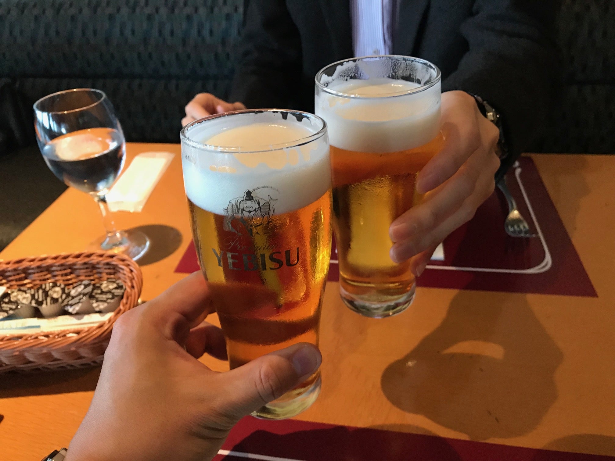 一次会は新宿三井クラブで執り行いました。昼からカジュアルにランチビールを強行発注