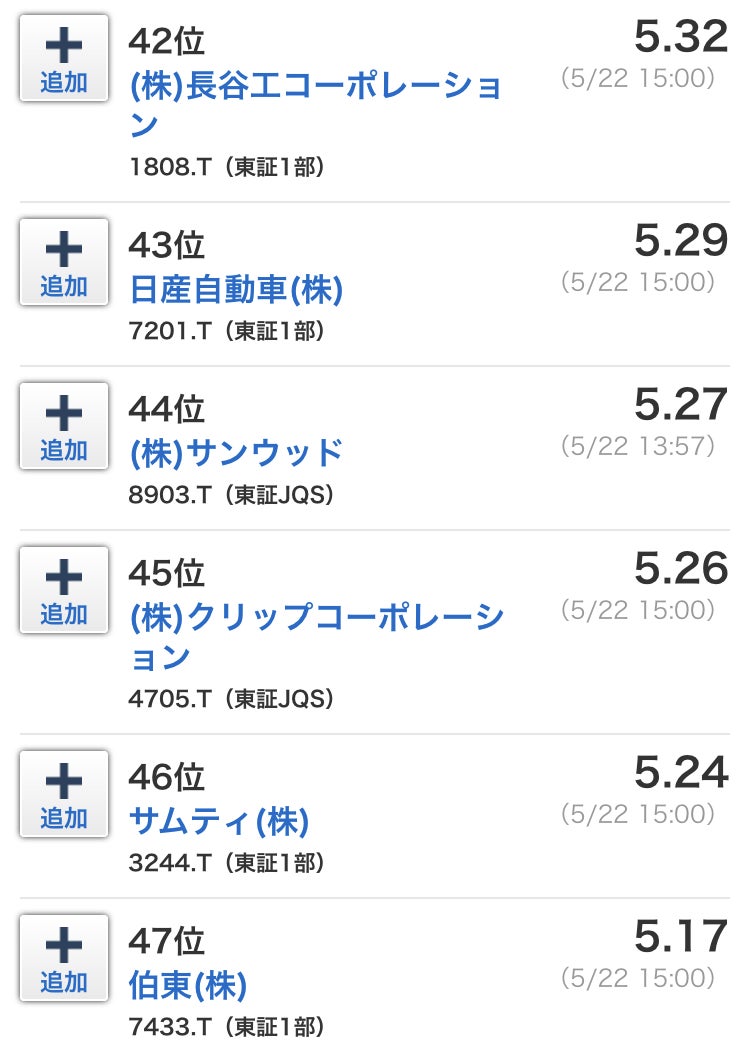 標記のとおり、一言コメント集です。なお配当利回り順位は今日(5/23)現在のものであり、