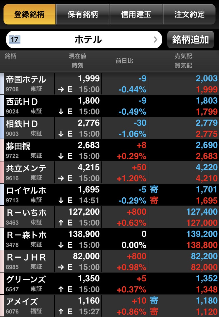 ホテル銘柄は外食銘柄よりも長い目線でみないと大した値動きが無いと思うので、一度