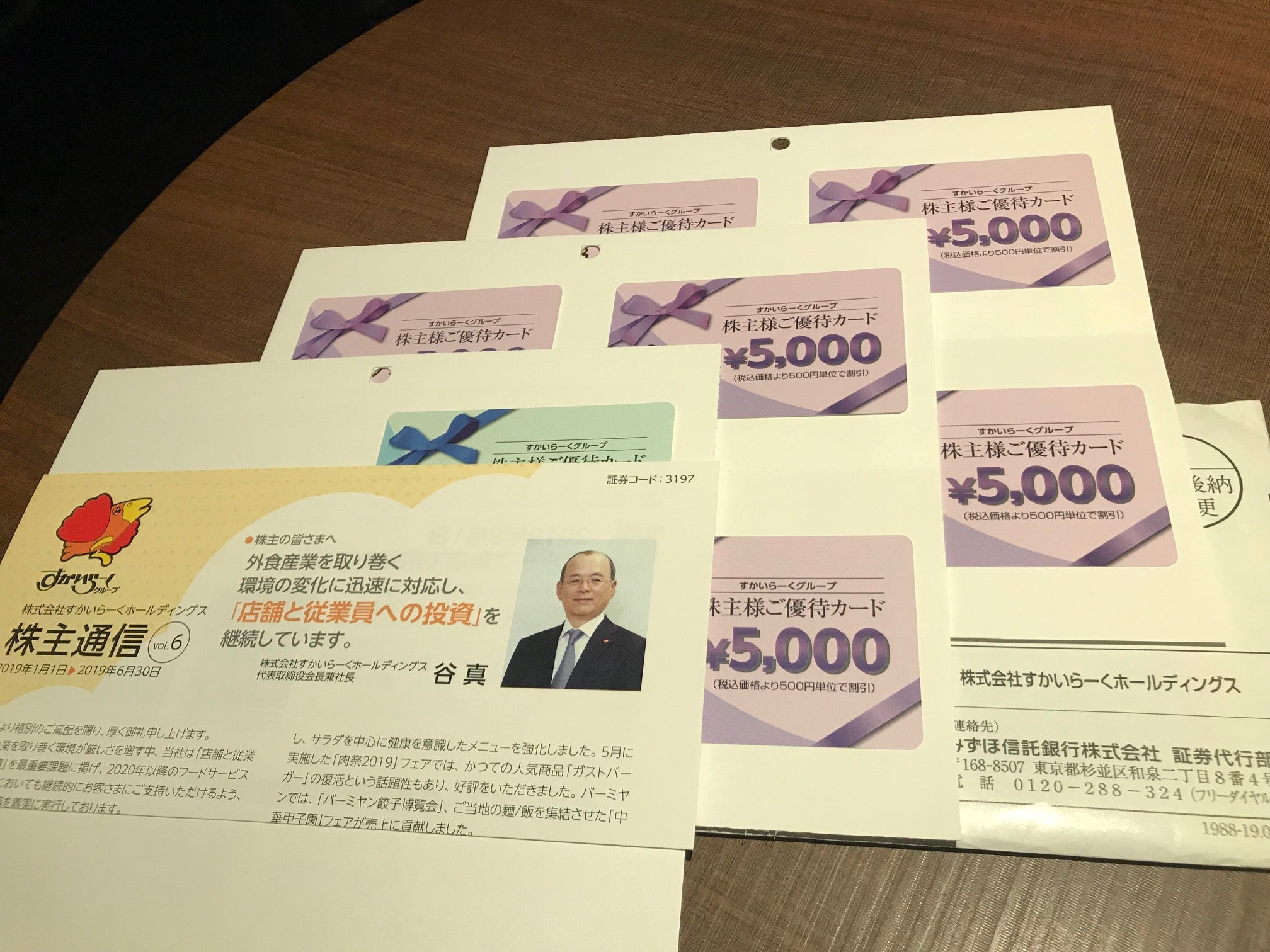 すかいらーくは株主優待として6月末・12月末の単元株主に対し、3,000円分のお食事券を年2回進呈しているため、配当優待利回りは約3.88%となります。なお、1,000株までは持株数に応じた優待券がほぼ正比例で追加されます。