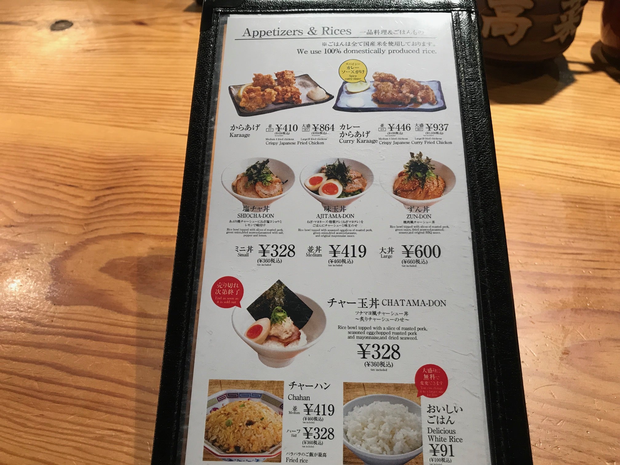 からあげ等のおつまみ兼用メニューも取り揃えているほか、サイドメニューの「おとも丼」もなかなか凝っています。この辺のラインナップは店によって結構異なっているようです。