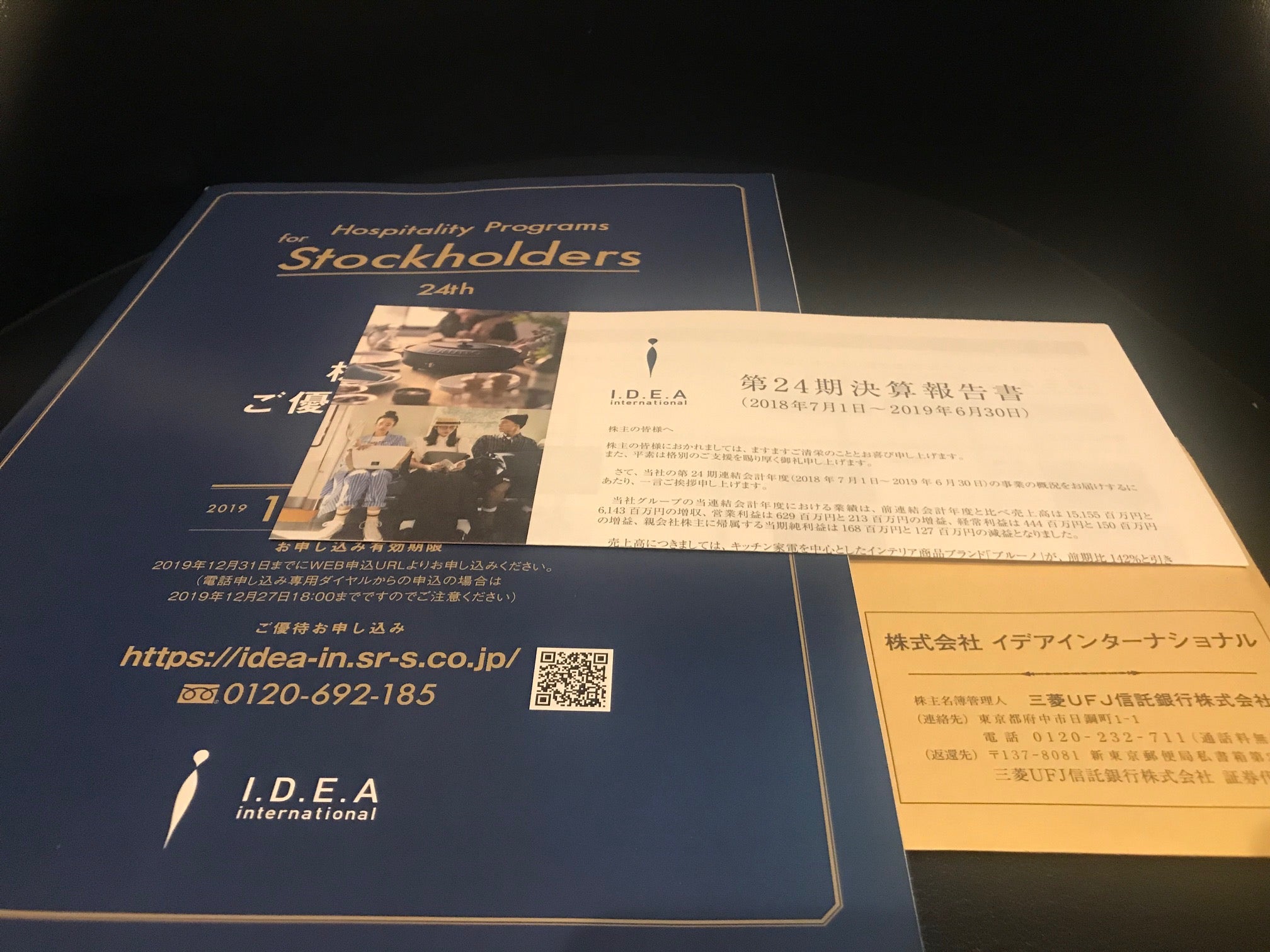 イデアインターナショナルは株主優待制度を導入しており、単元株以上を保有する6月末の株主に対して、9,000円分のグループ商品を進呈しておりますので、配当優待利回りは約10.3%となります。