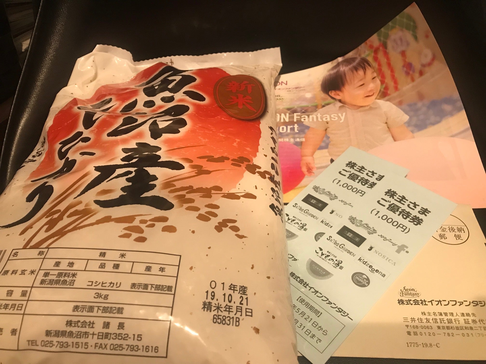 イオンファンタジーは株主優待制度を実施しており、100株以上を保有する2月末・8月末の株主に対して、2,000円の施設利用券を進呈しているほか、2月末の株主に対しては別途お米(魚沼産コシヒカリ3㎏.)を進呈しているため、お米を1,500円で計算した場合の配当優待利回りは約3.61%となります。