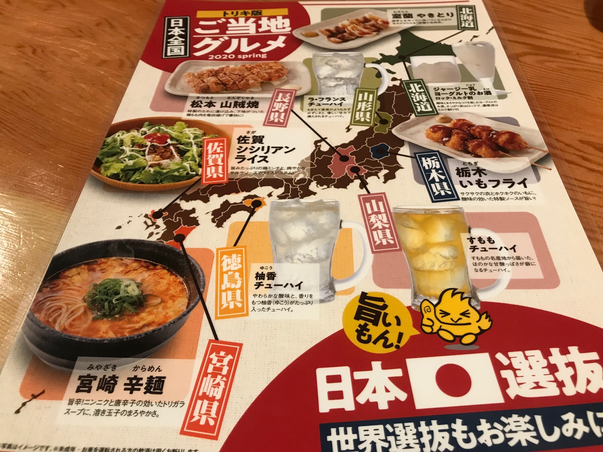 新型肺炎影響で当面休業になってしまうとのことなので、駆け込み?で行ってきました。“日本選抜フェア”なるこれまでには無かったような企画を実施しており、全国のご当地グルメを取り揃えていました。鳥ならでは・・・ということで、試しに長野県松本市名物の山賊焼を注文してみましたが、シンプルながら美味しかったです。チキン南蛮のカロリーが気になる向きは是非注文いただきたいと思います。