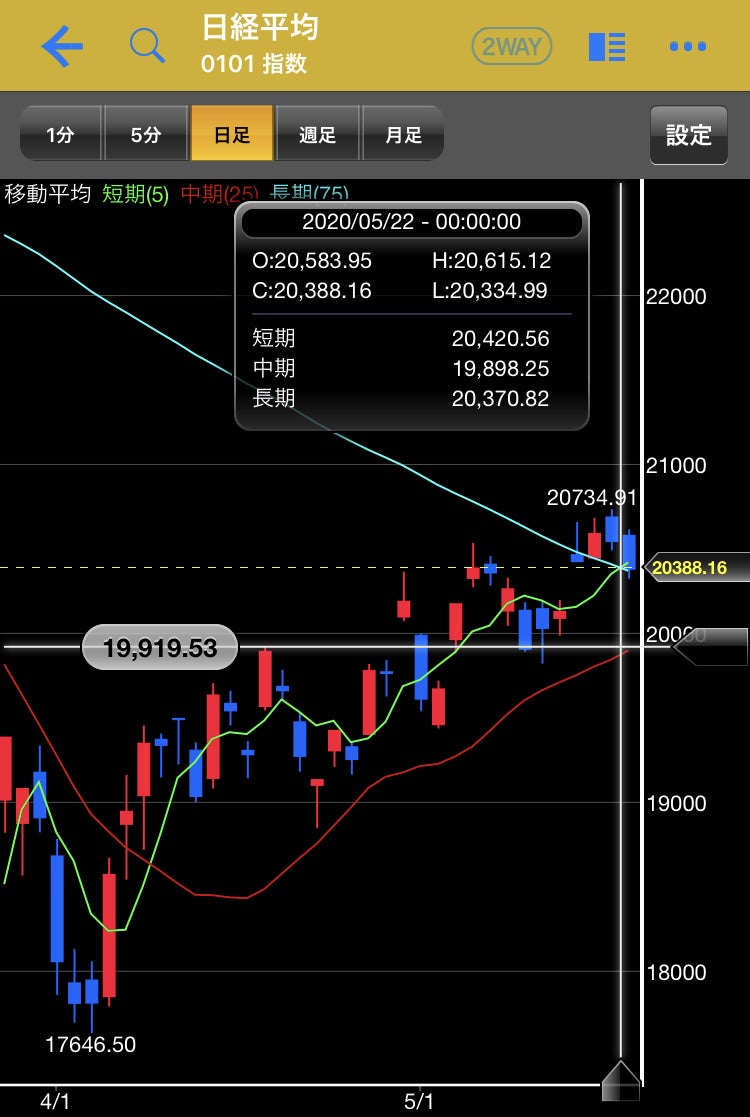 個人的な希望的展開としては、とりあえず日経平均で2万円台まで戻ったので、ここからは暫くはヨコヨコで十分と考えています。海外市況や新型肺炎の動向にも大きく左右される部分もありますが、下げも急なら戻りも急なので日柄調整して落ち着きを取り戻す必要があると考えており、ボラタイルな動きが続くうちは“吹き値は売り”とし、平時ではさらに上値を欲張るような局面でも細かく逃げるようなスタンスが重要かと思います。