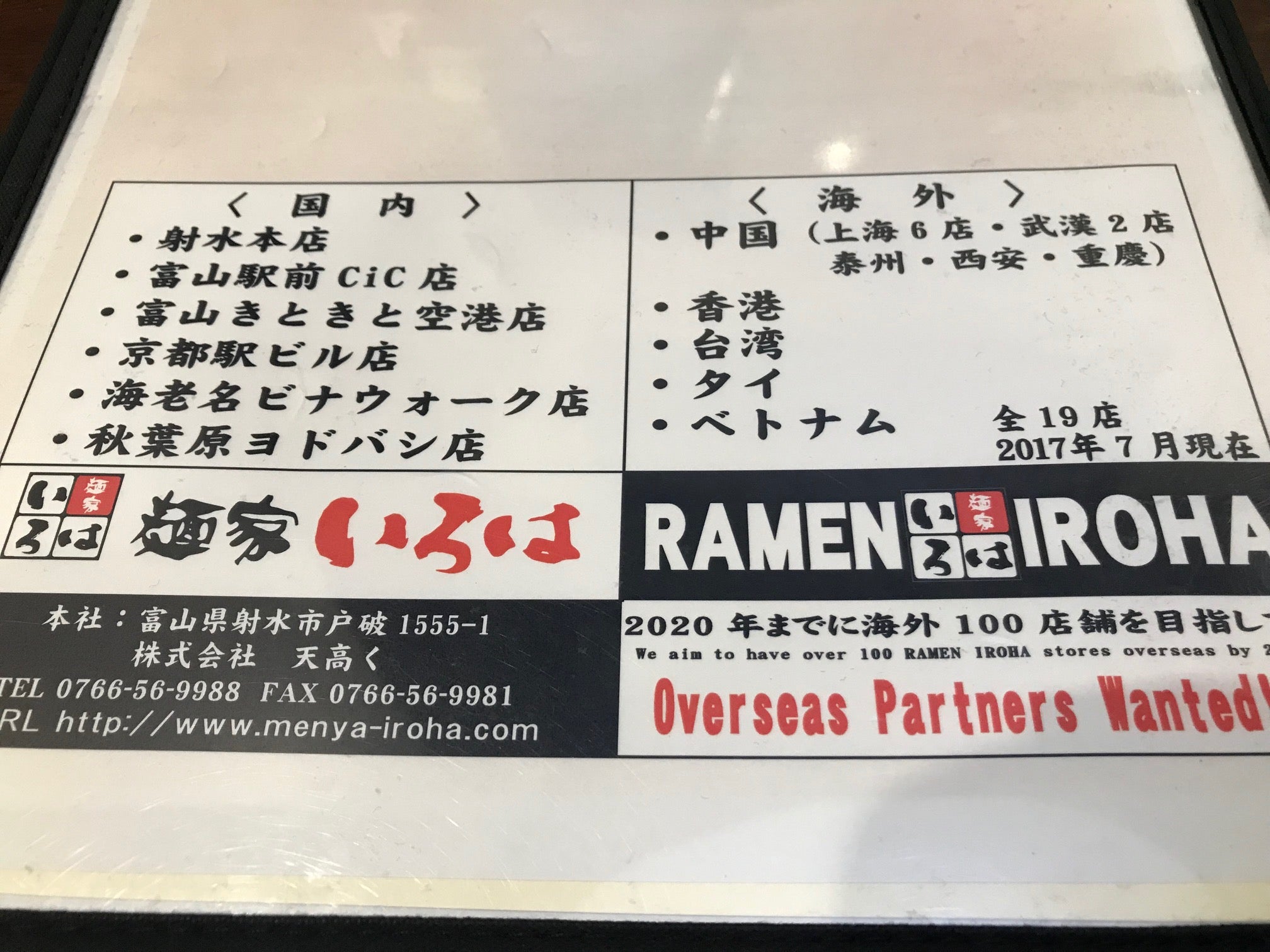 「麺家 いろは」は富山県射水に本店を構え、2017年7月現在では国内外で19店を運営しているようです。中でも中国は上海、武漢、泰州、西安、重慶で延べ10店強を展開しており、進出が進んでいます。本邦では地盤の富山に3店構える以外には京都、海老名とこちらの秋葉原にしか店がないため、そういう意味では大変貴重な在京店舗ということになります。