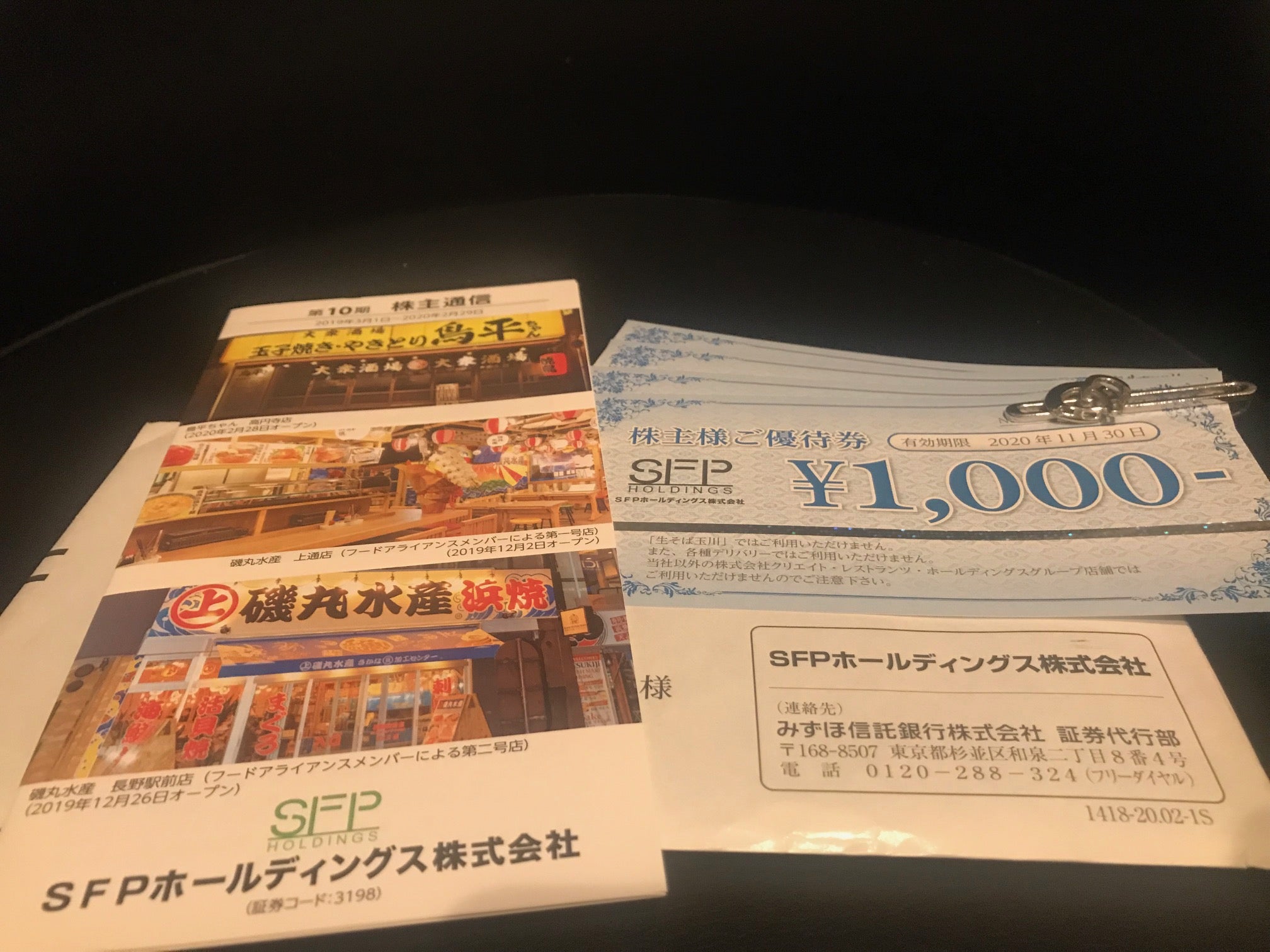 SFPホールディングスは株主優待制度を実施しており、2月末・8月末の単元株主に対して、それぞれ4,000円分の食事券を進呈していますので、配当優待利回りは約4.87%(無配前提)となります。