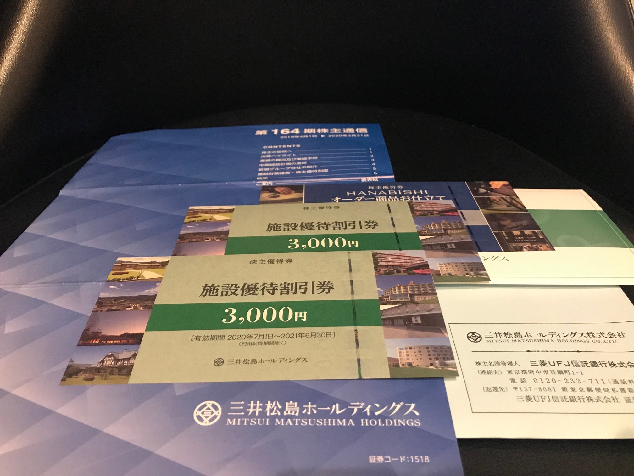 三井松島産業は株主優待制度を実施しており、3月末に単元株を保有する株主に対して、6,000円分の自社運営宿泊施設の宿泊割引券と5,000円分のオーダースーツ等お仕立券を進呈しておりますので、宿泊券のみ計算した場合の配当優待利回り(想定)は約14.4%となります。