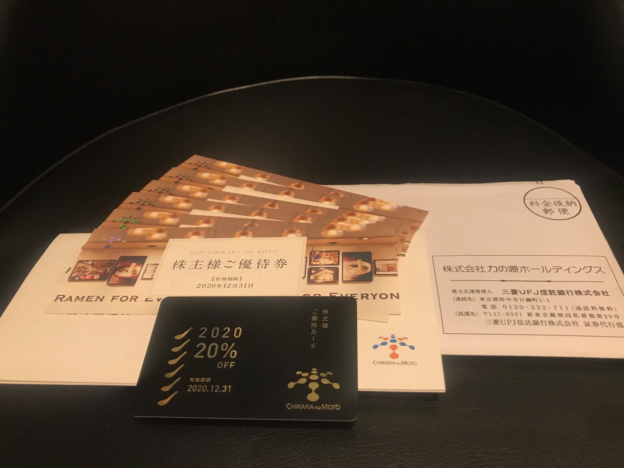 力の源ホールディングスは株主優待制度を導入しており、3月末・9月末に単元株を保有する株主に対して、10%割引カードを進呈しております。また1年以上保有株主には、ラーメン1杯無料券を進呈しているため、830円の「赤丸新味」注文時における配当優待利回りは約3.41%となります。なお本食事券で同伴1名までが無料(計2杯無料、その場合の想定利回りは約5.72%)となります。