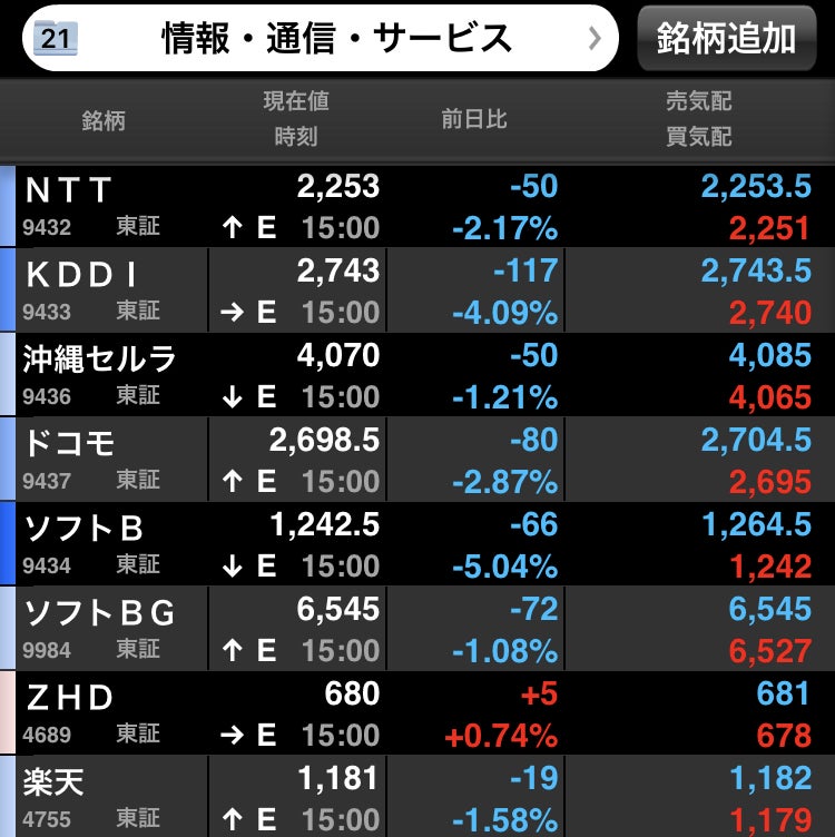 そのため、そういう処分売りが出尽くすまでは配当利回りといったモノサシはワークしずらく、逆張り感覚で通信株を買い向かうにしても、例えばもの凄い出来高を何日も連続でこなすとか、平時とは違ったモノサシで見て、政策の動向等をにらみつつ、時期も分散して慌てずに買うことが肝要かと思います。通信株は中長期軸では国策銘柄ですが、短期軸では反国策銘柄の色が出やすい状況と言えます。