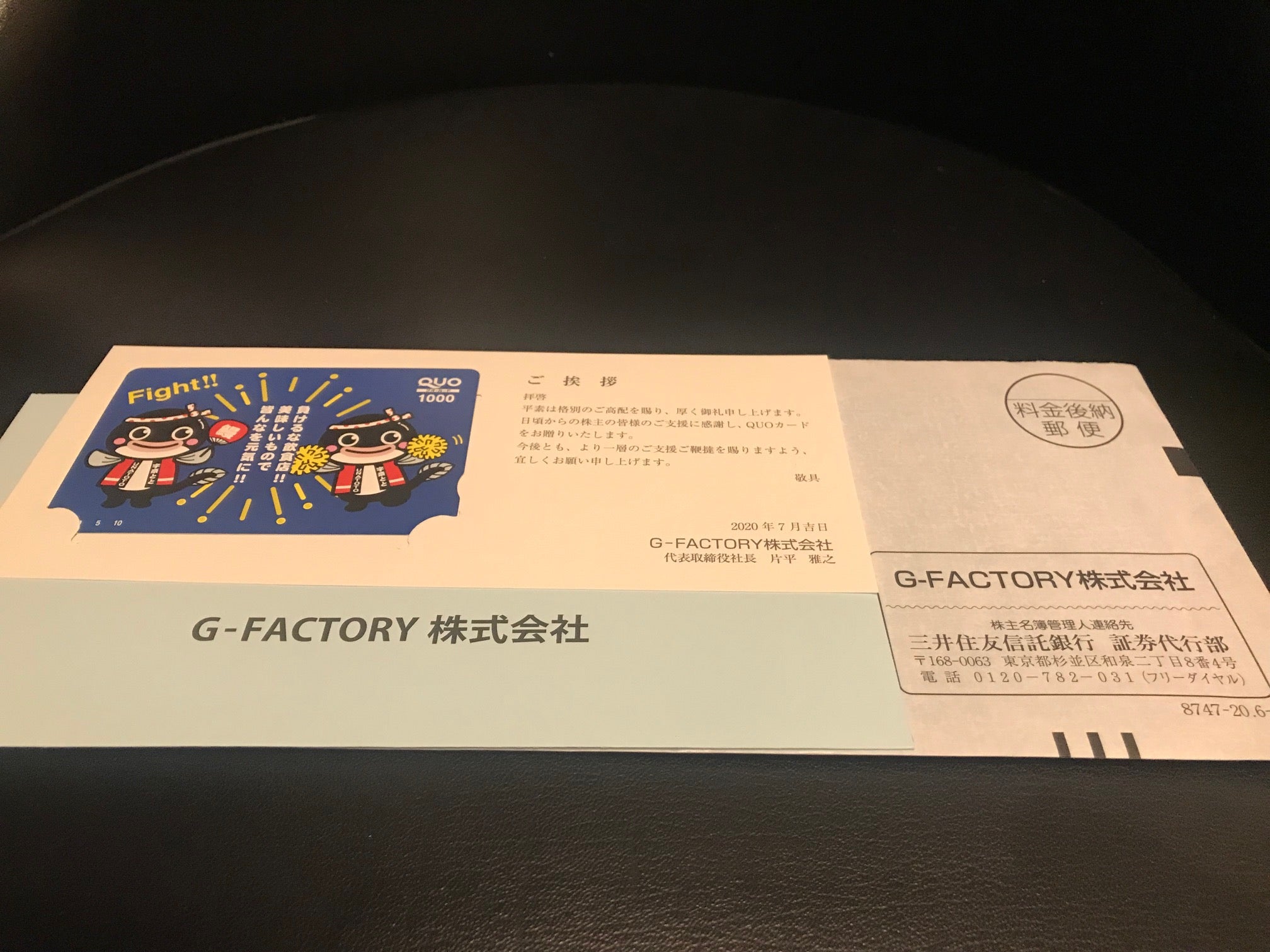 G−FACTORYは株主優待制度を実施しており、単元株を保有する6月末株主に対して、1,000円分のクオカードを進呈しておりますので、優待利回りは約2.65%となります。
