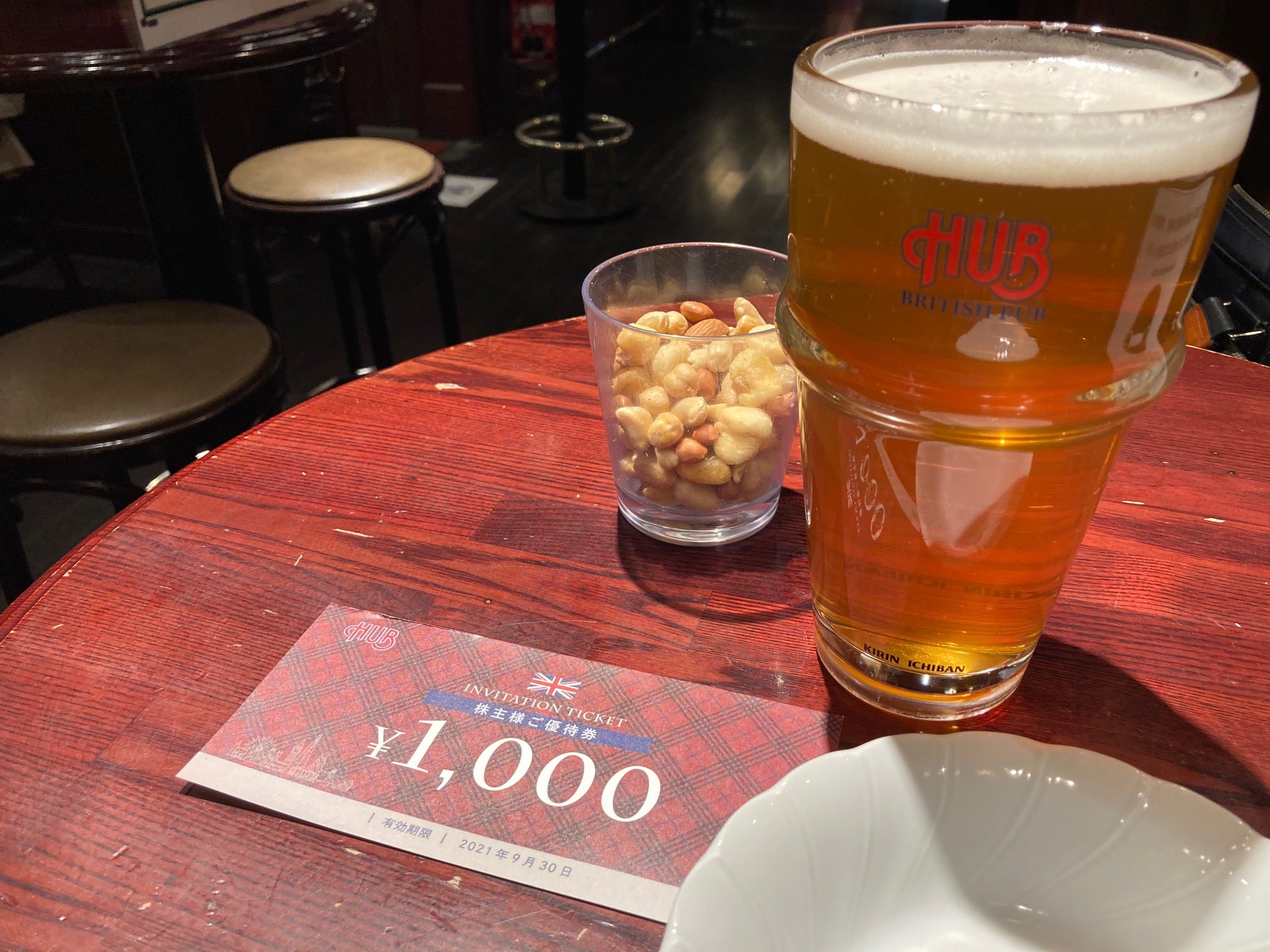 優待族積年の夢であった株主優待制度がやっとこさ新設されたため、食事券を握りしめて行ってきました。金種1,000円なのでメニュー価格帯と馴染んでおらず多少使いずらい?部分もありますが、そこはハブエールの1pint発注とミックスナッツの合わせ技で対応します。