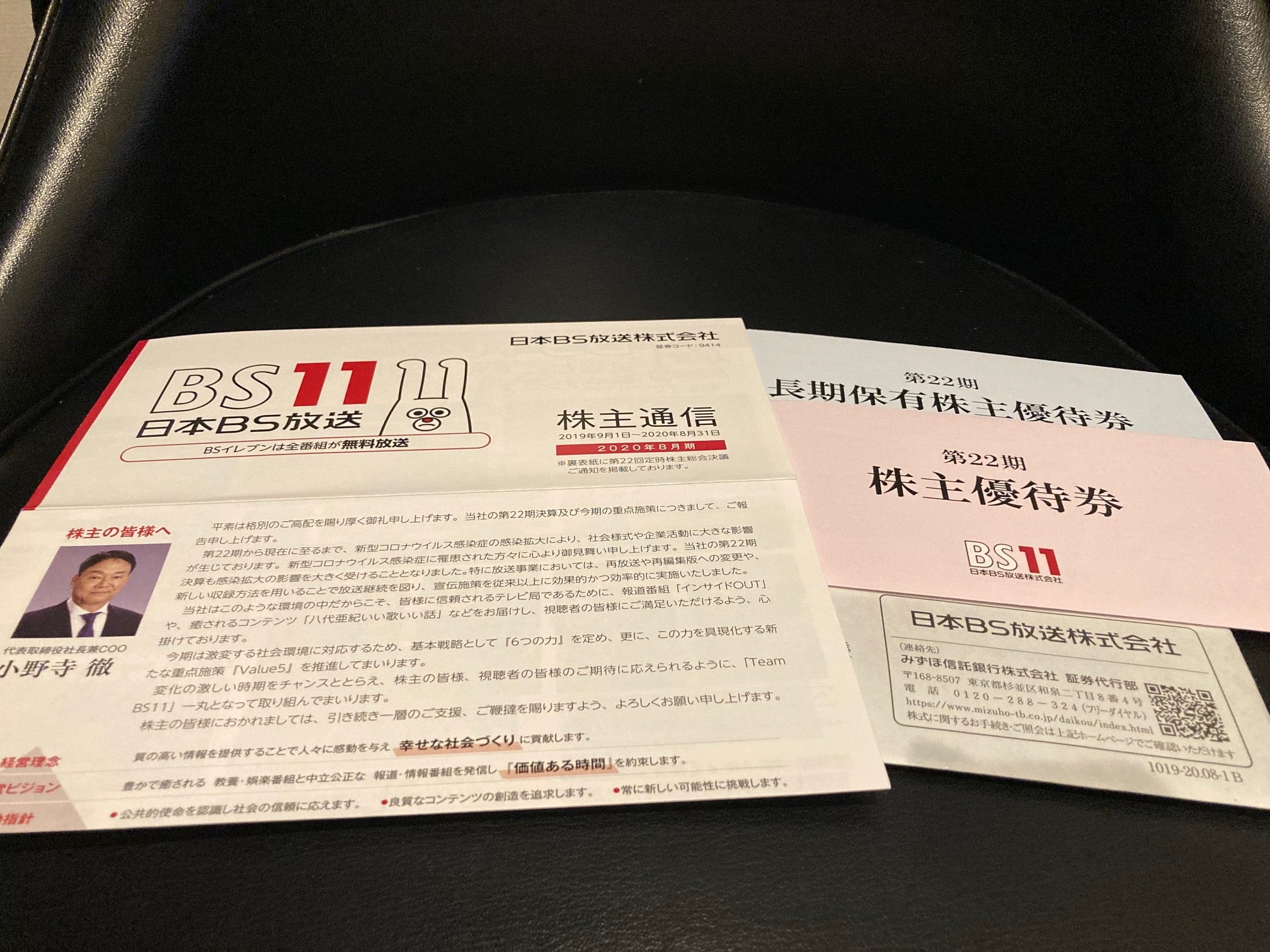 日本BS放送は株主優待制度を実施しており、2月末・8月末に単元株を保有する株主に対して、1,000円分のビックカメラ商品券を進呈しておりますので、配当優待利回りは3.72%となります。なお1年以上保有を継続した場合には、8月末に1,000円分の商品券を追加進呈していますので、その場合の利回りは約4.65%となります。