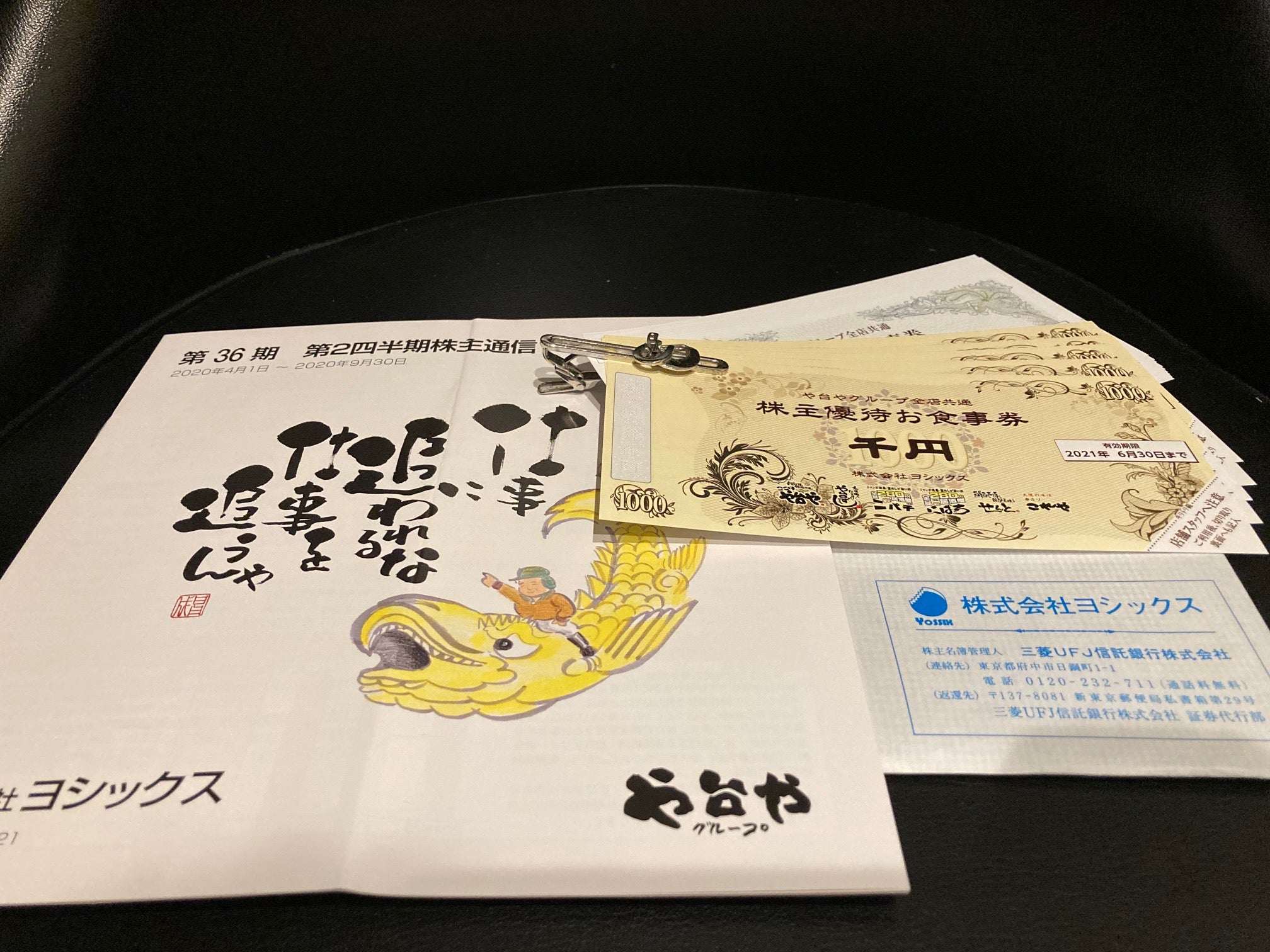 ヨシックスは株主優待制度を実施しており、100株以上を保有する3月末・9月末の株主に対して、3,000円相当の食事券(および食事2割引券10枚)を進呈しておりますので、配当優待利回りは約4.55%となります。