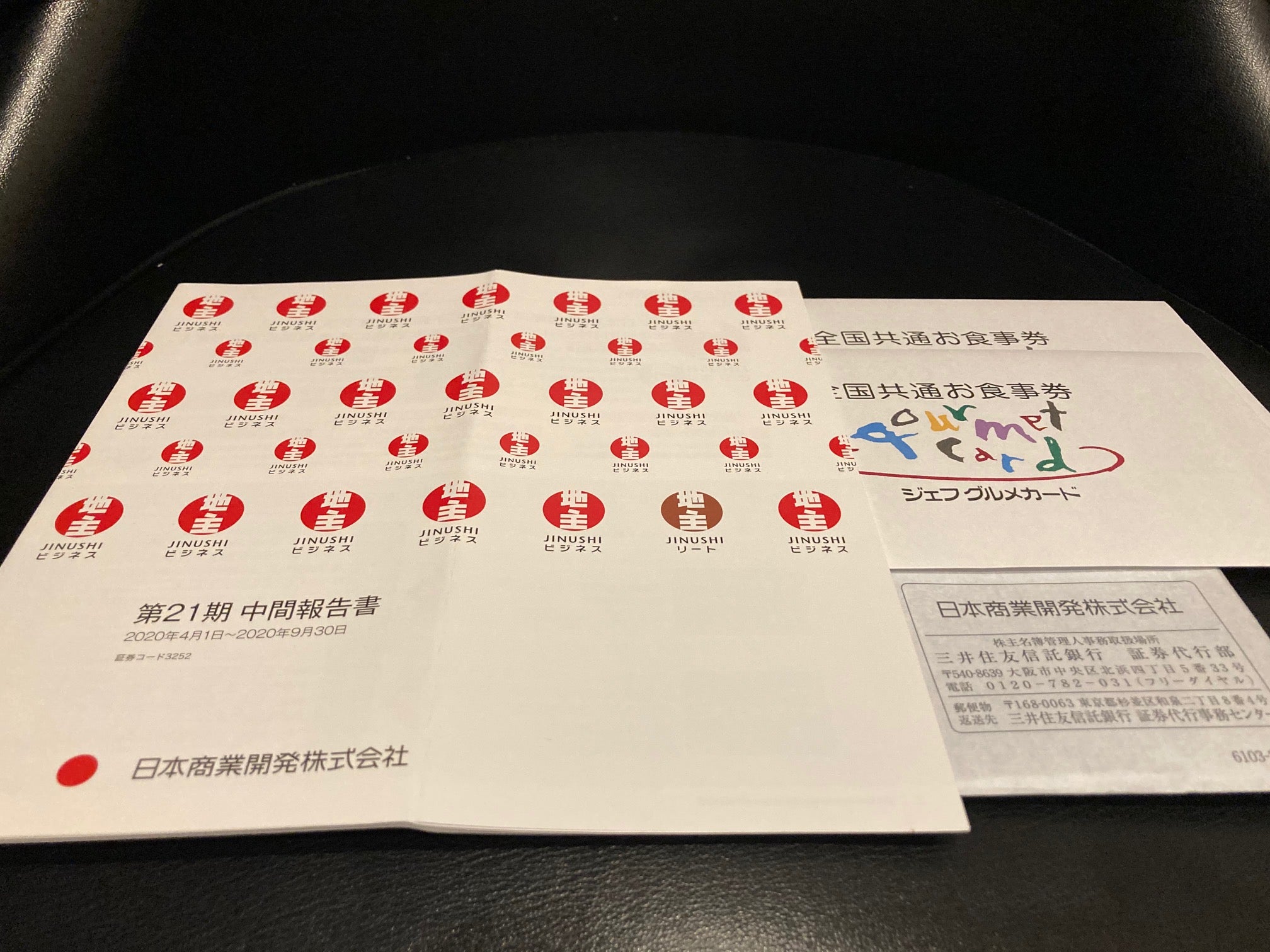 日本商業開発は株主優待制度を実施しており、3月末・9月末に3単元以上を保有する株主に対して、3,000円分のジェフグルメカードを進呈しておりますので、3単元保有時における配当優待利回り(12ヶ月実績ベース)は約4.38%となります。