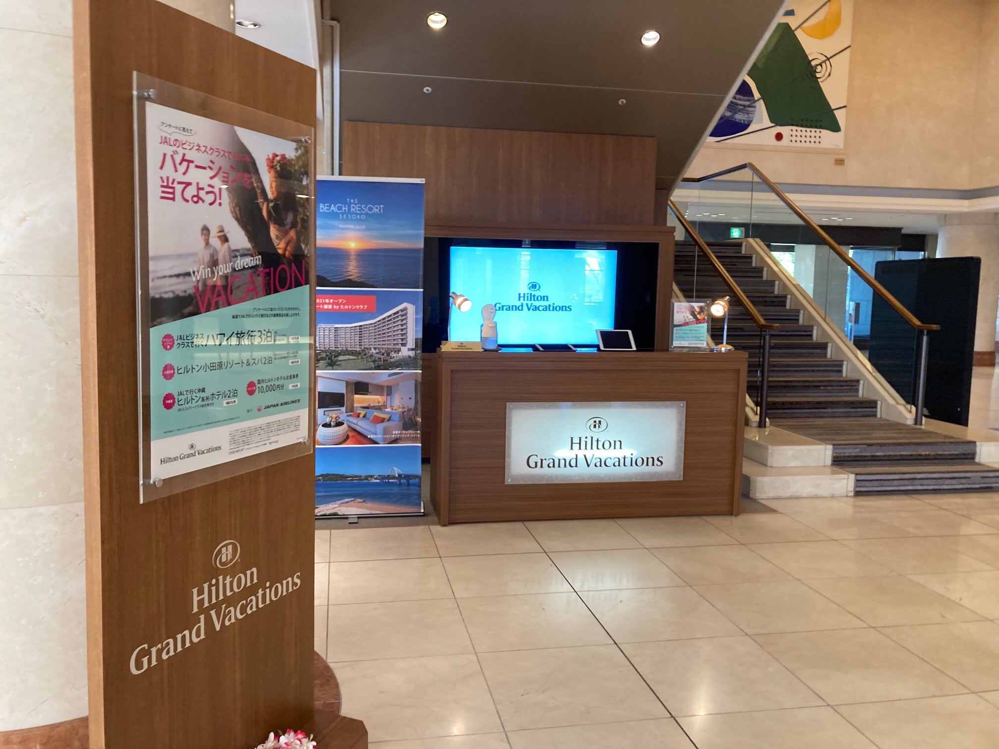 なお、当然ながら本ホテルにもヒルトンによくあるグランドバケーションズの宣伝ブースがあり、係の方が熱心にハワイの宣伝をしています。これを見るとああヒルトンに泊まりに来たなんだな・・・とつい胸がアツくなります。