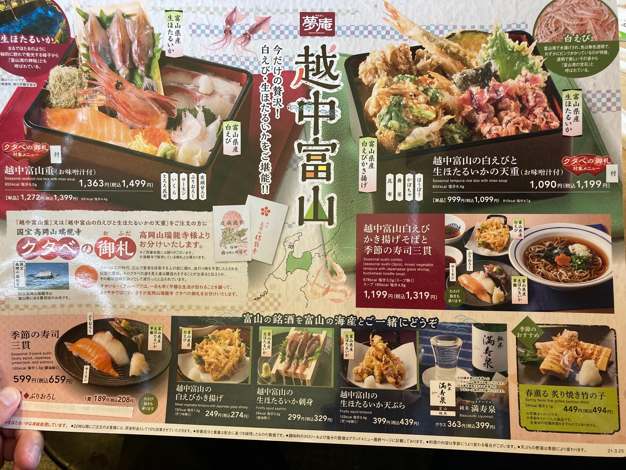 越中富山フェアが実施されており、春の時期が旬となる白えびやホタルイカを使用した海鮮重や天丼の取扱がありました。